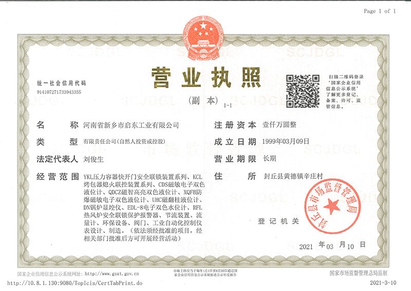 河南省新鄉市啟東工業有限公司始建于1987年,是專注研發、生產自動化儀器儀表(主要與壓力容器、鍋爐等容器配套使用)的廠家。主要產品有液位計(磁敏雙色型、磁翻柱型等)系列、烤包器熄火聯控裝置系列、壓力容器快開門安全聯鎖保護裝置系列、鍋爐報警器系列。二十多年來,公司產品暢銷國內并遠銷俄羅斯、蒙古與東南亞,深得廣大用戶的信賴和好評。我們多年來致力于自動化儀器儀表的研制生產,公司現具有完善的生產、試驗、檢測手段和設備??萍紕撔?、誠信服務,是我們不變的經營理念,我們將以強有力的技術支持及售后竭誠為客戶提供良好的服務。  2012年我公司成功研發了KCL系列烤包器熄火聯控裝置,并于2013年2月2日榮獲中華人民共和國國家知識產權局辦法的《實用新型**證書》<**號:2021202257735>該產品廣泛應用于唐鋼等大型鋼鐵企業,為烤包器安全作業提供了有力的保障?! ?002年我公司成功研發磁敏電子雙色液位計獨特的高亮度LED紅綠雙色顯示,獲得了專家的首肯和用戶的一致好評。在此基礎上我公司研發人員十年磨一劍,致力于XQFB-1防爆型磁敏雙色液位計的研發,于2013年12月27日由國家防爆電器產品質量監督檢驗中心檢驗合格并頒發防爆合格證書<編號:cnex19.0883>。該產品性能得到了充分的發揮,廣泛應用于含有Ⅱ類A·B級T1-T4組可燃氣體或蒸汽與空氣混合形成的爆炸性混合物的0區、1區危險場所。連接用戶DCS或PLC系統實現遠距離集中顯示和控制,從而實現節能、數字化管理。為用戶增加了一定的經濟效益和社會效益,。2014年公司成功申請了夢潤儀表的logo,新的品牌新的形象,夢潤儀表是啟東的LOGO, 歡迎新老用戶前來洽談合作?! ∥覀円蝗缂韧刈⒅乜蒲械耐度耄瑧{借產品的不斷更新、加大科技含量,進一步拓展市場。我們相信品質成就未來,以過硬質量、優惠價格、完善的售后服務熱忱歡迎廣大客戶來我司視察指導、洽談業務;精誠合作,共創輝煌!